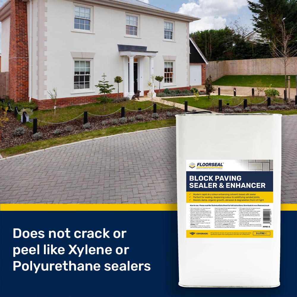 Block Paving Sealer & Enhancer has a modern xylene free solvent-based formula which is low odour, rapid dry & non-flammable. Easy to apply via roller and/or sprayer. Strongly resists moisture clouding, degradation/discolouration by UV light, resists surface staining & inhibits organic growth.