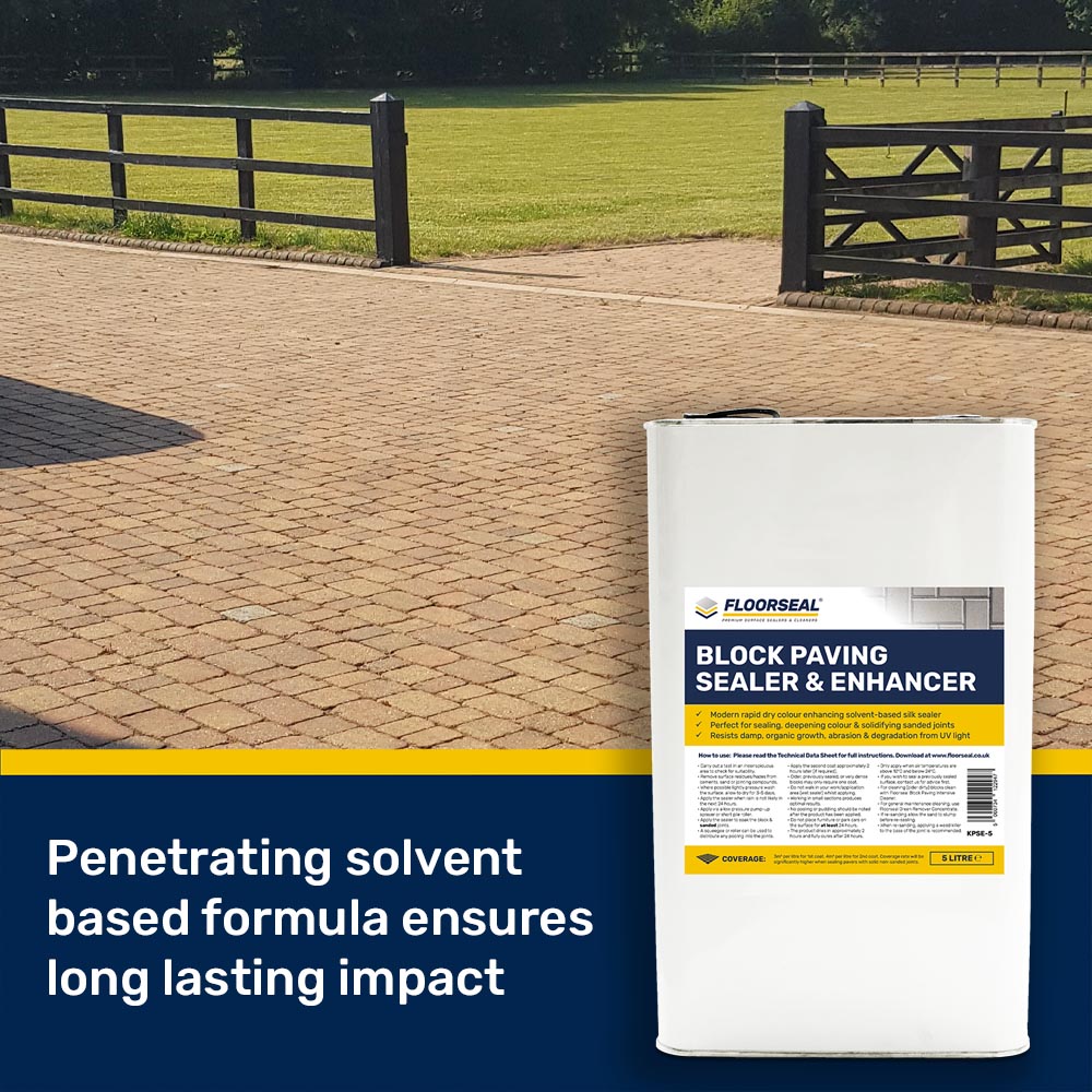 Floorseal Block Paving Sealer & Enhancer is a rapid dry modern solvent-based block paving sealer. Apply to old or new block pavers to seal blocks & solidify sanded joints. This wet look block paving sealer enhances colours & provides durable protection from general staining, organic growth & weeds.