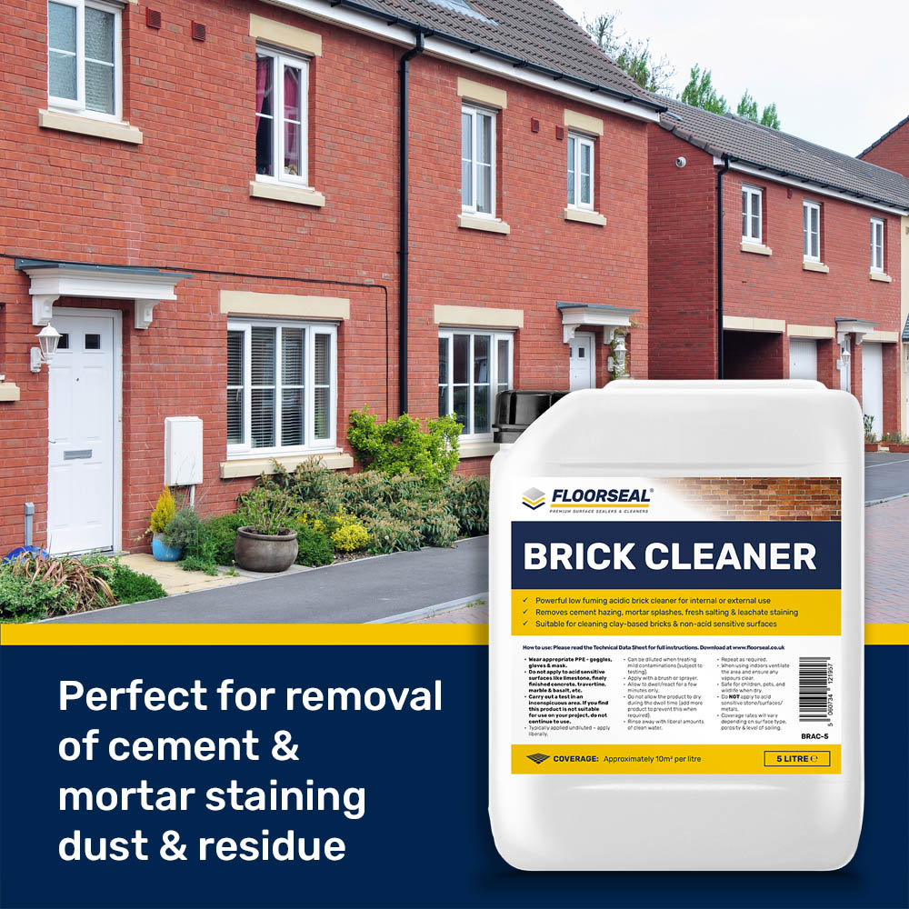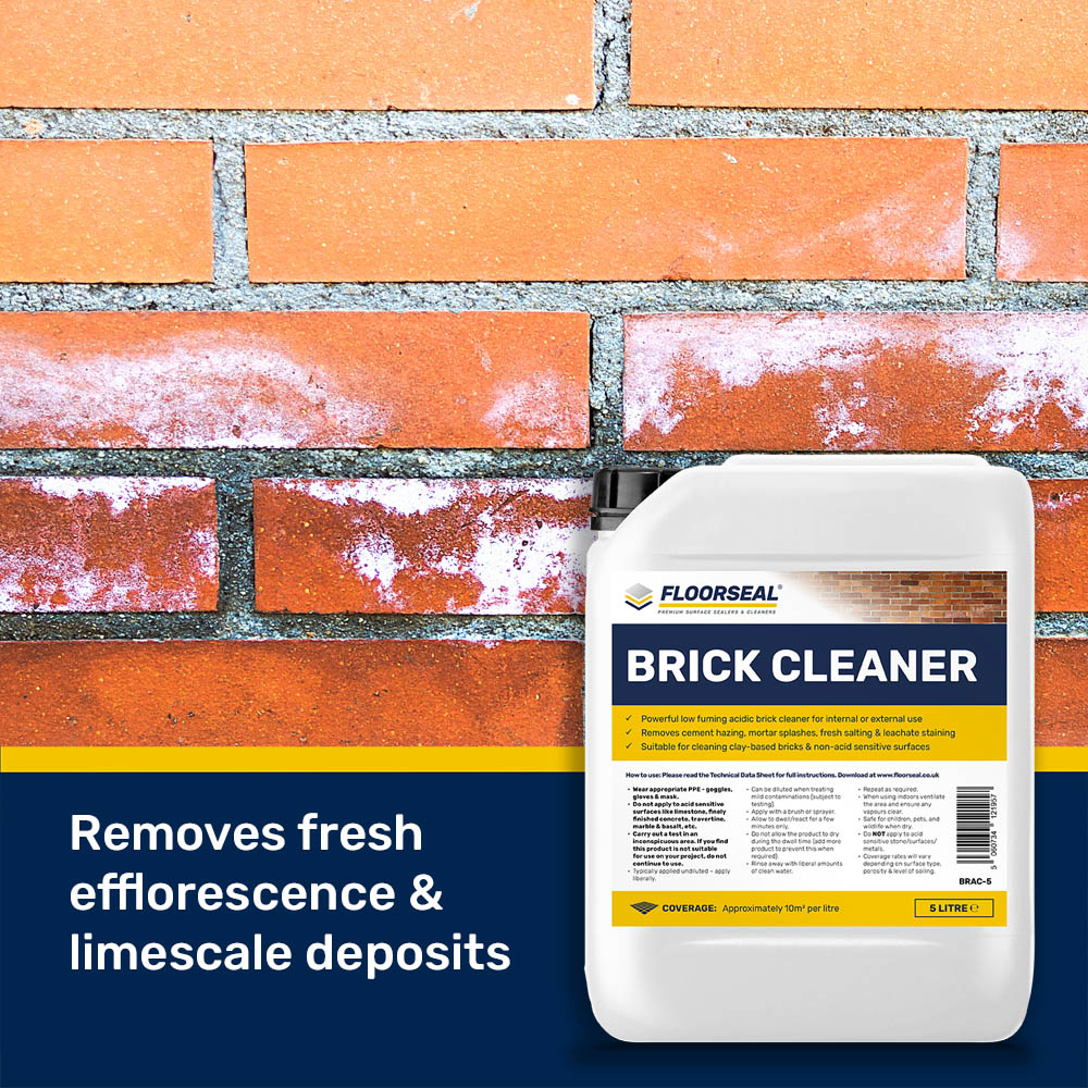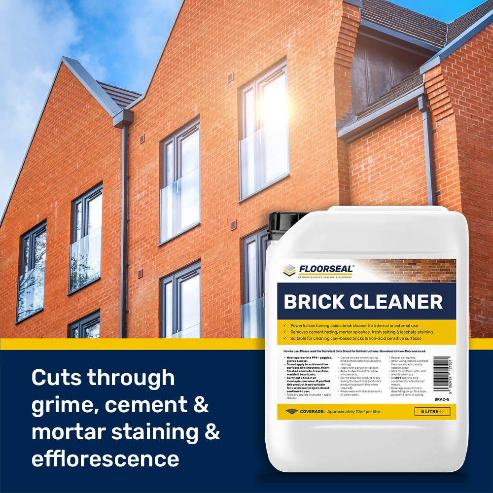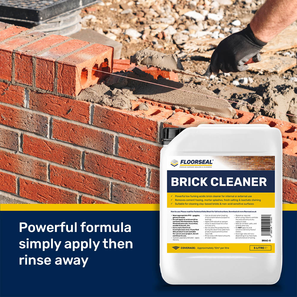 Floorseal Brick Cleaner is fast acting making light work of cement staining, efflorescence & cement-based grout haze.