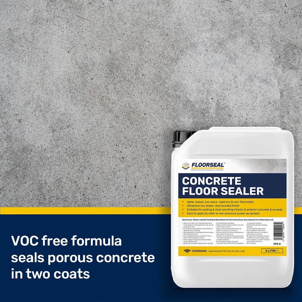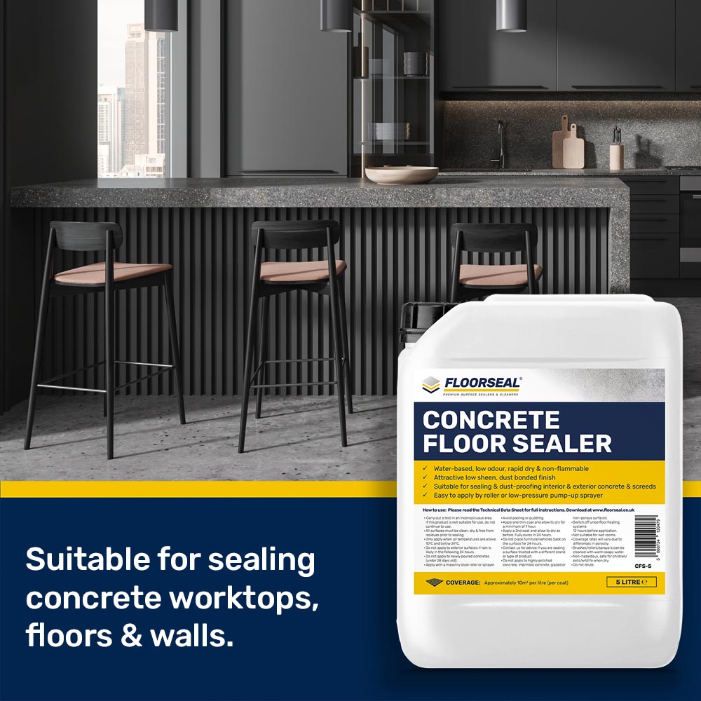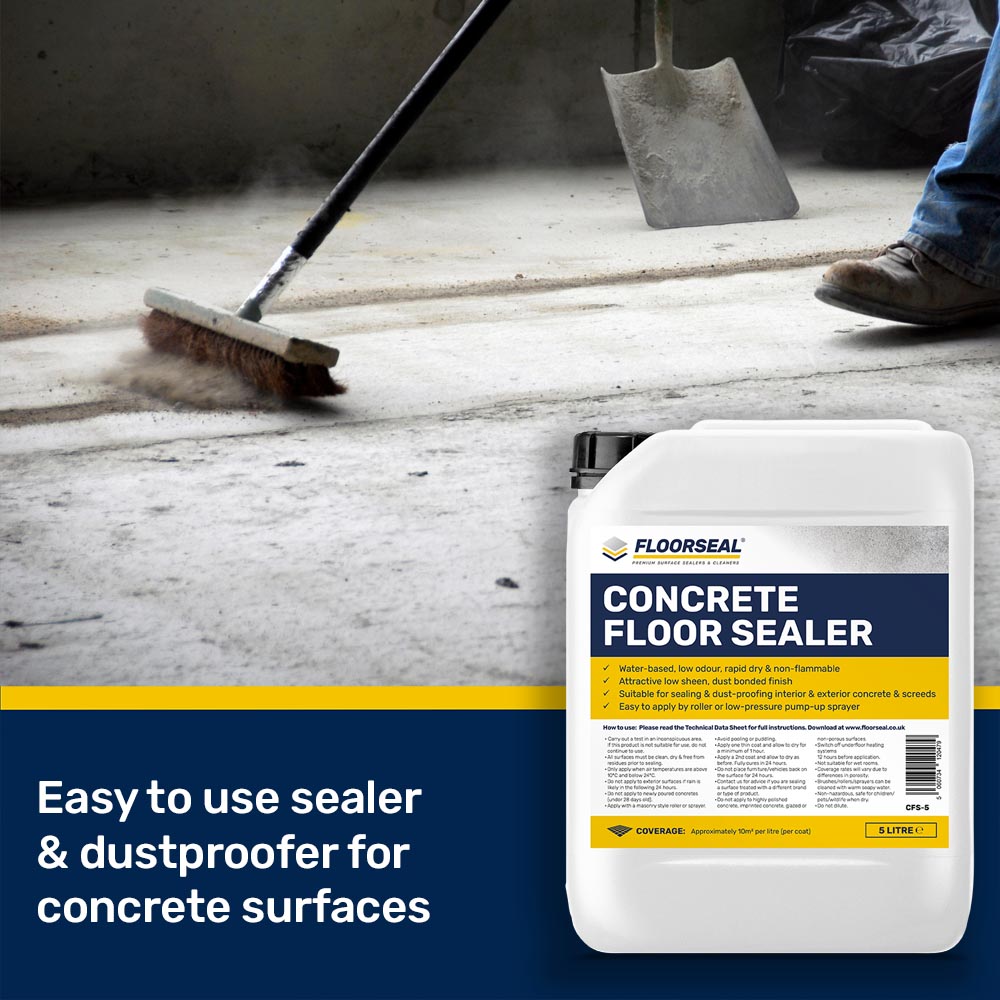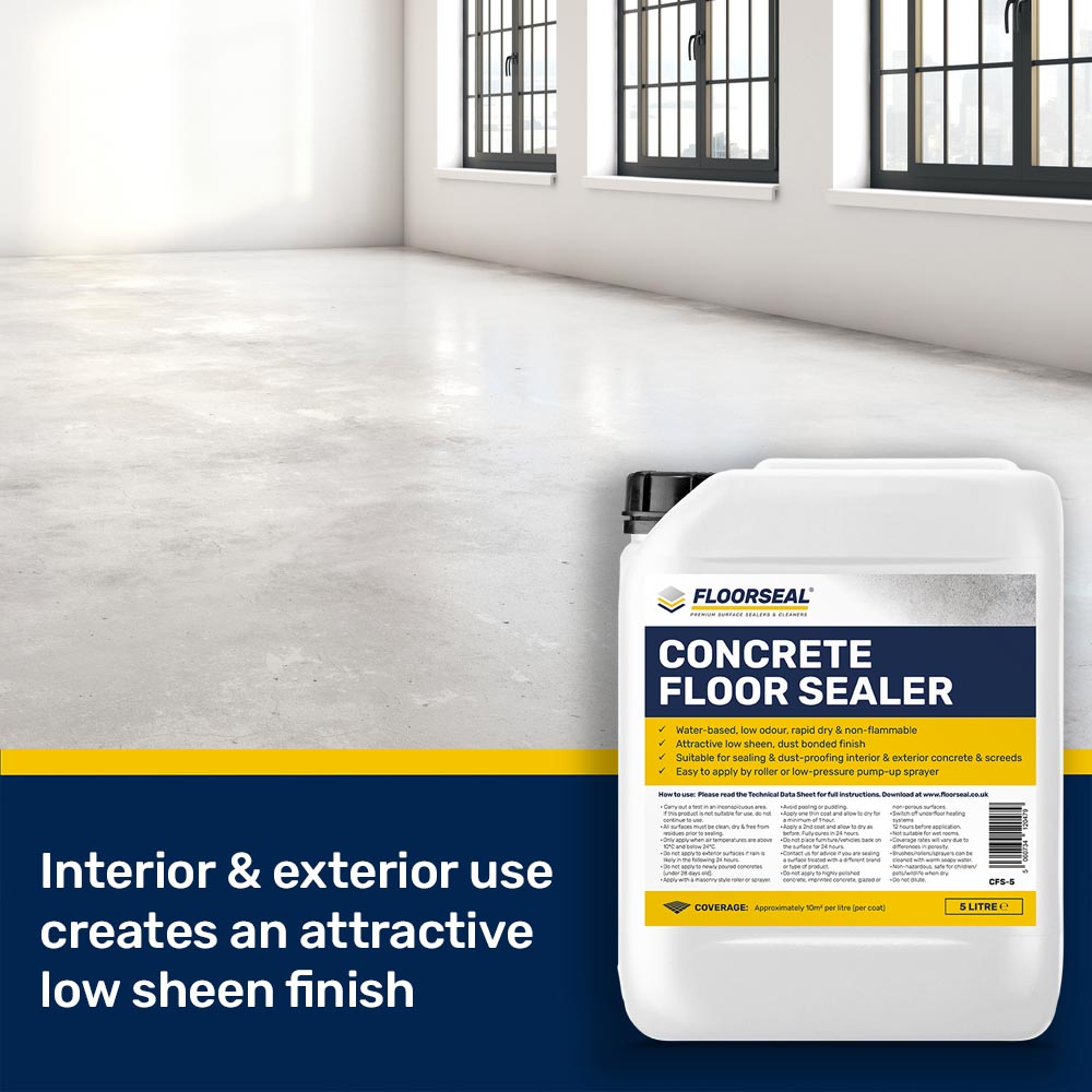 Floorseal Concrete Floor Sealer is a water-based, rapid-dry VOC free sealer. This concrete sealer will dry to a translucent, very low sheen satin (almost matt) finish. It is suitable for sealing and hardening concrete floors, walls, steps and worktops. Concrete Floor Sealer is a dust sealer for concrete floors which resists staining and prevents natural dusting. Concrete Floor Sealer provides an economical way of sealing and dust-proofing domestic surfaces, garage floors, walls, steps and industrial/commercial walls & floors. This product can be used on interior or exterior projects.