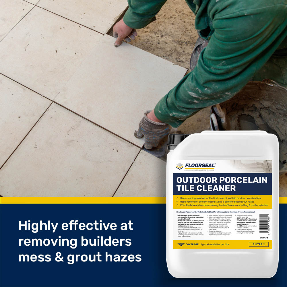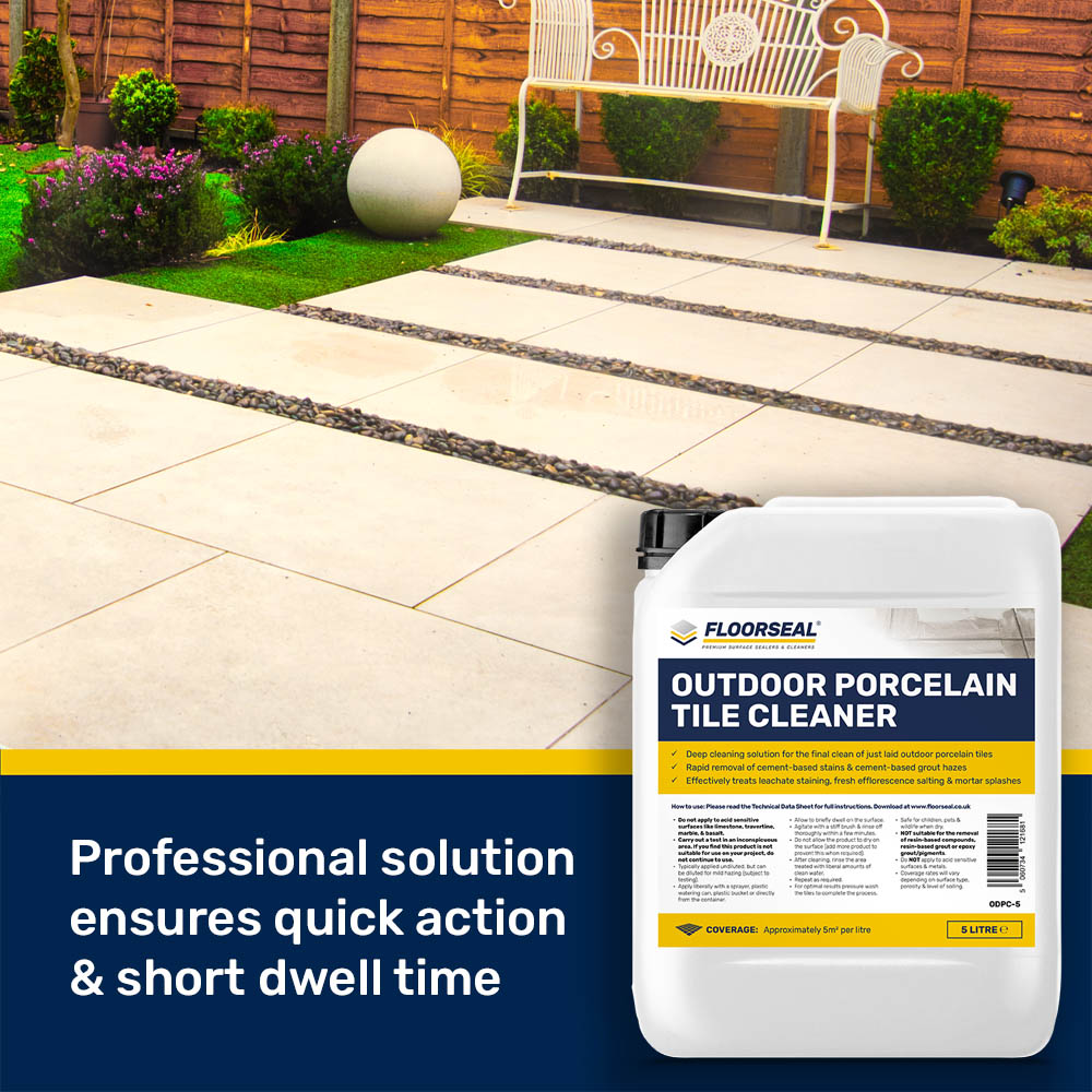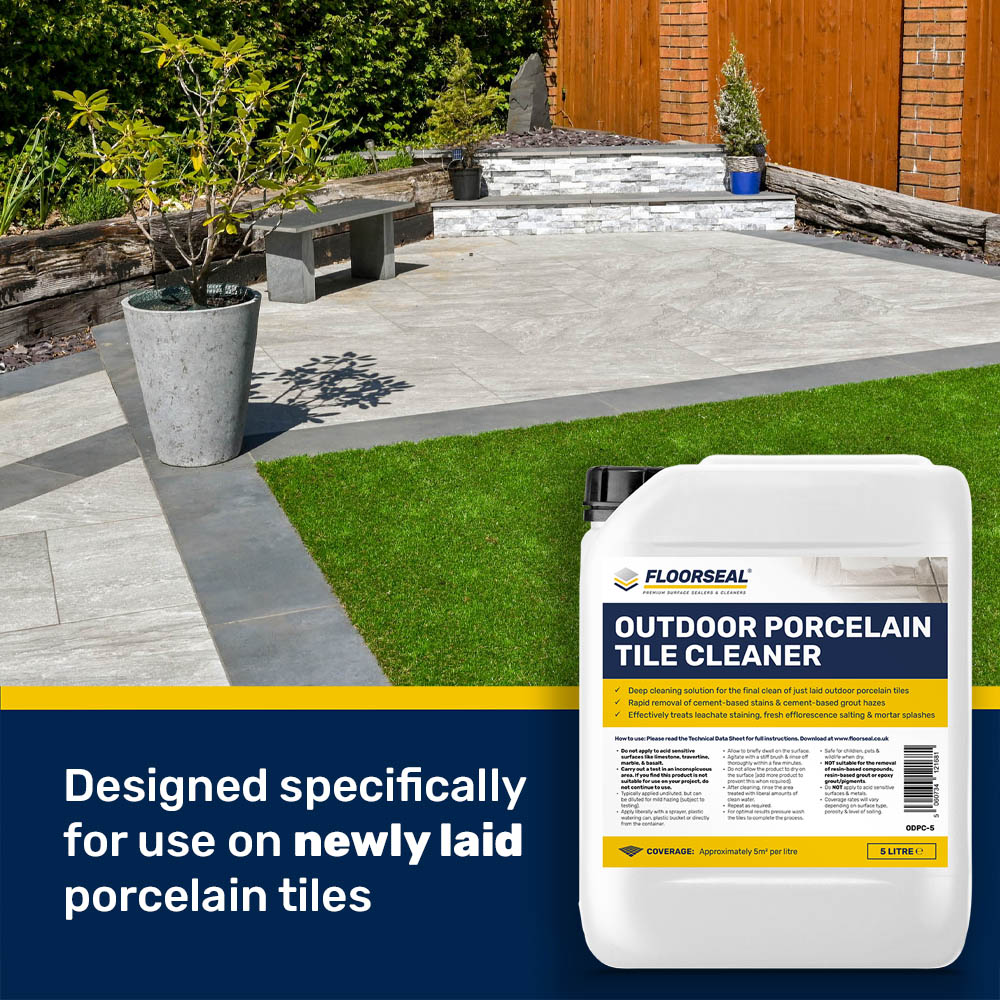 Outdoor Porcelain Tile Cleaner is a powerful porcelain tile patio cleaner that is best suited to cleaning ‘just laid’ porcelain tiles.